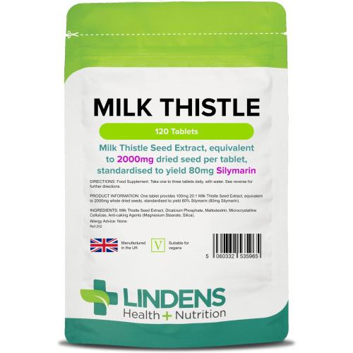 Lindens Milk Thistle 2000mg Tablets contain a potent, 20:1 concentrated extract of whole dried seeds, equivalent to 2000mg whole dried seeds, and standardised to provide 80% silymarin, in an easy-swallow convenient tablet.